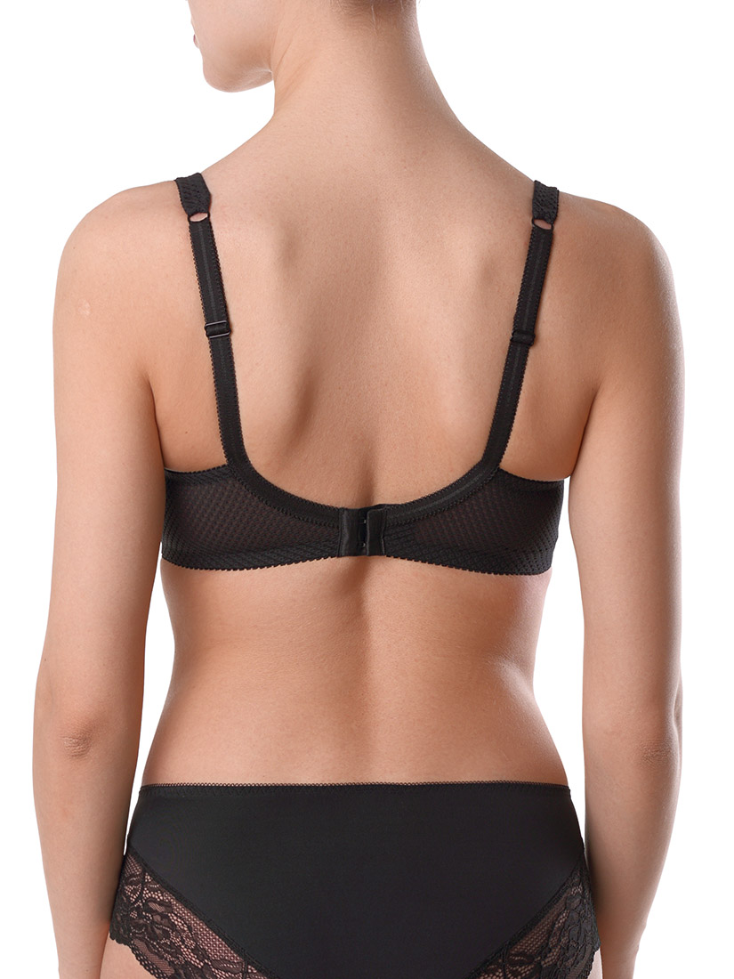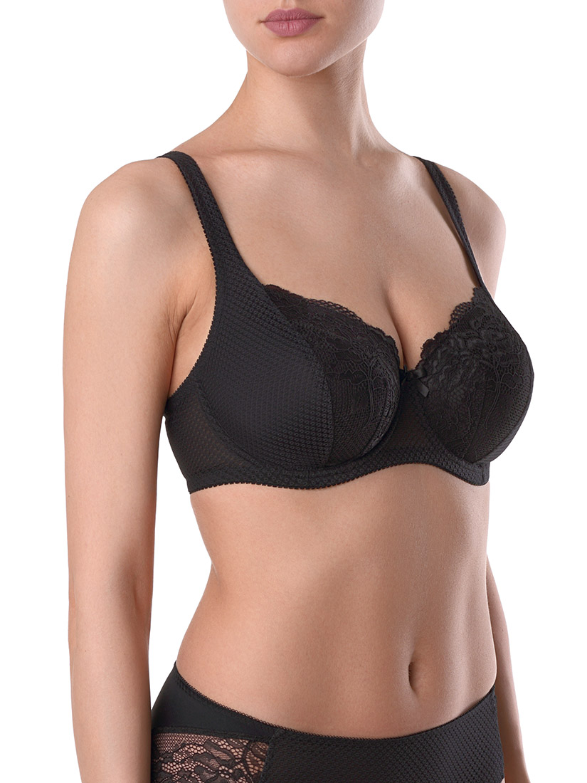 Выполнен из эластичного кружева и жаккардового сетчатого полотна